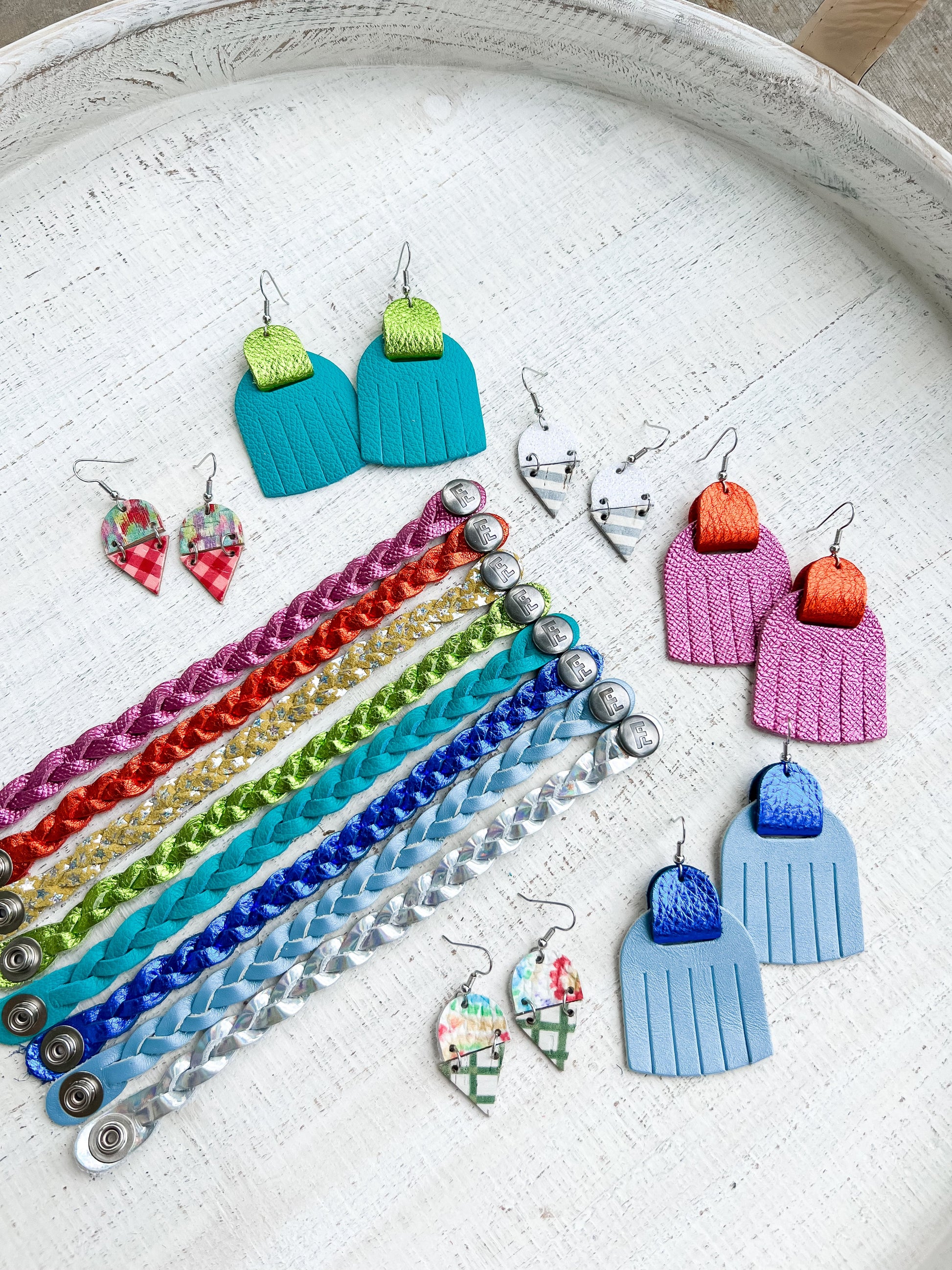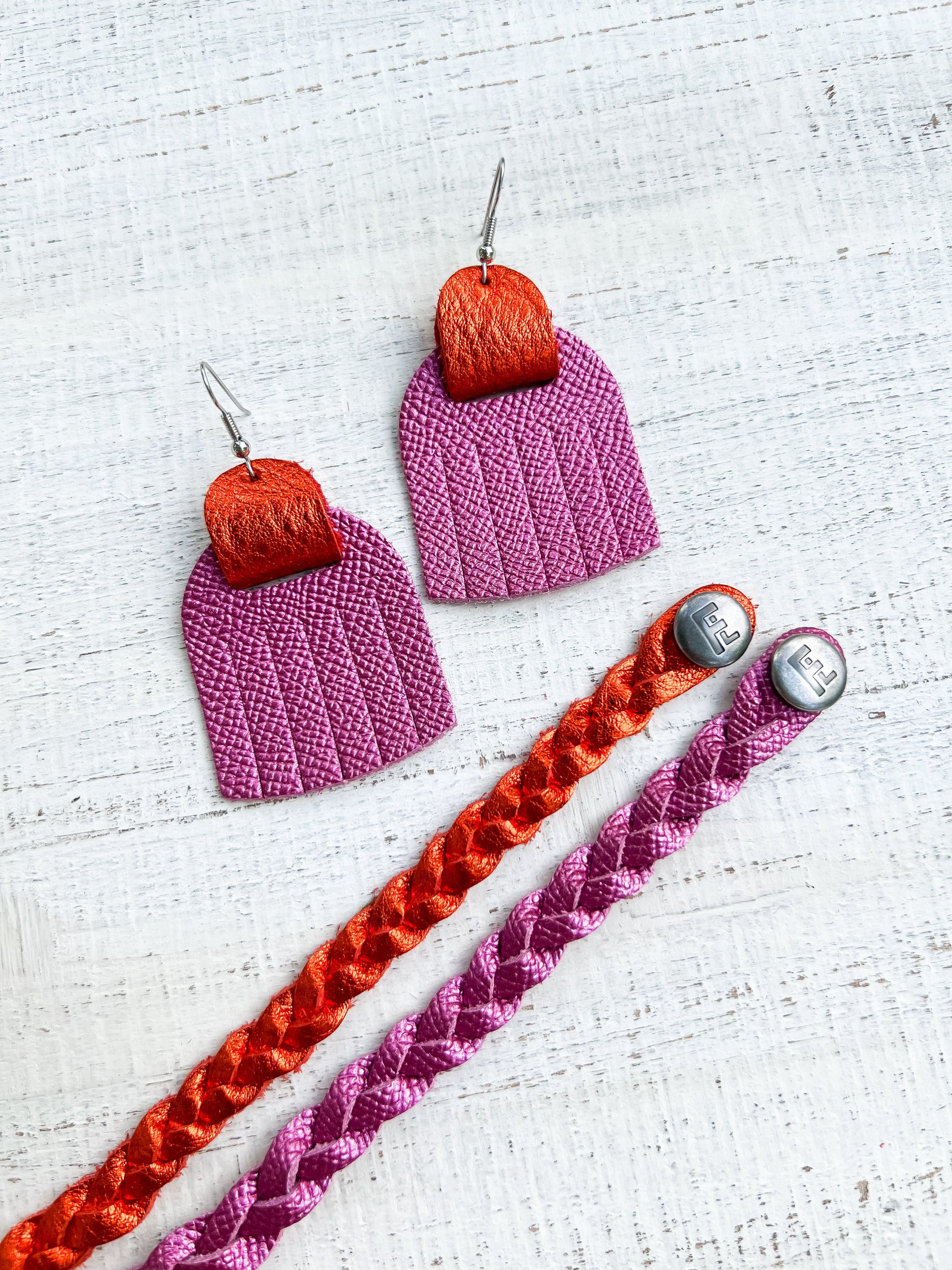 These bracelets will come with a brushed silver FL (Flourish Leather) logo snap.