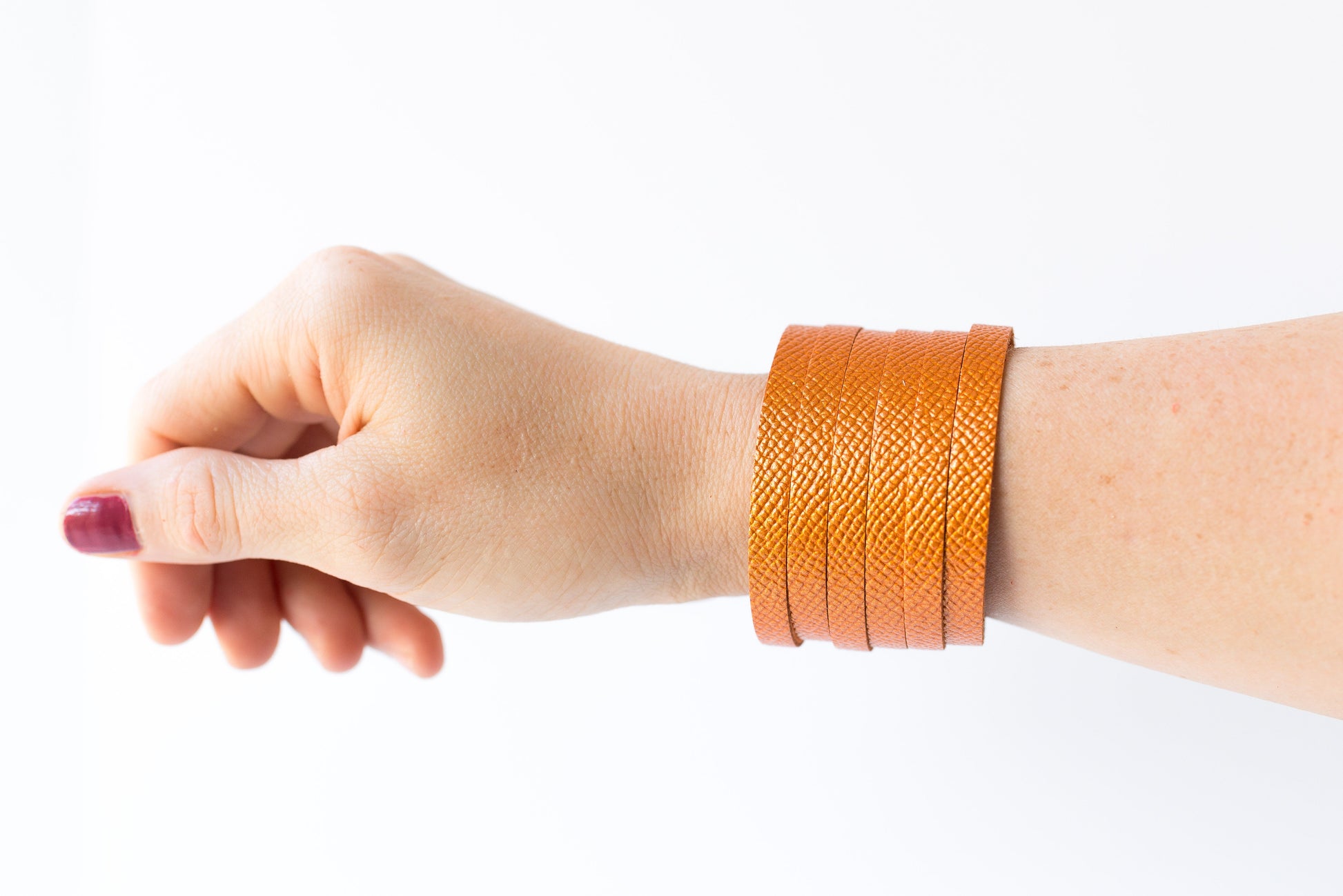Leather Bracelet / Original Sliced Cuff / Autumn Blaze / Large