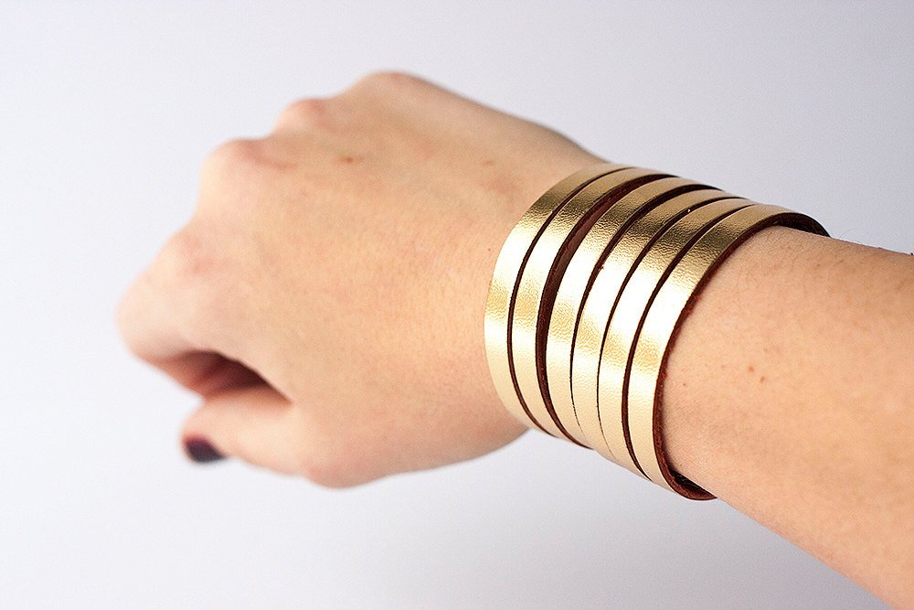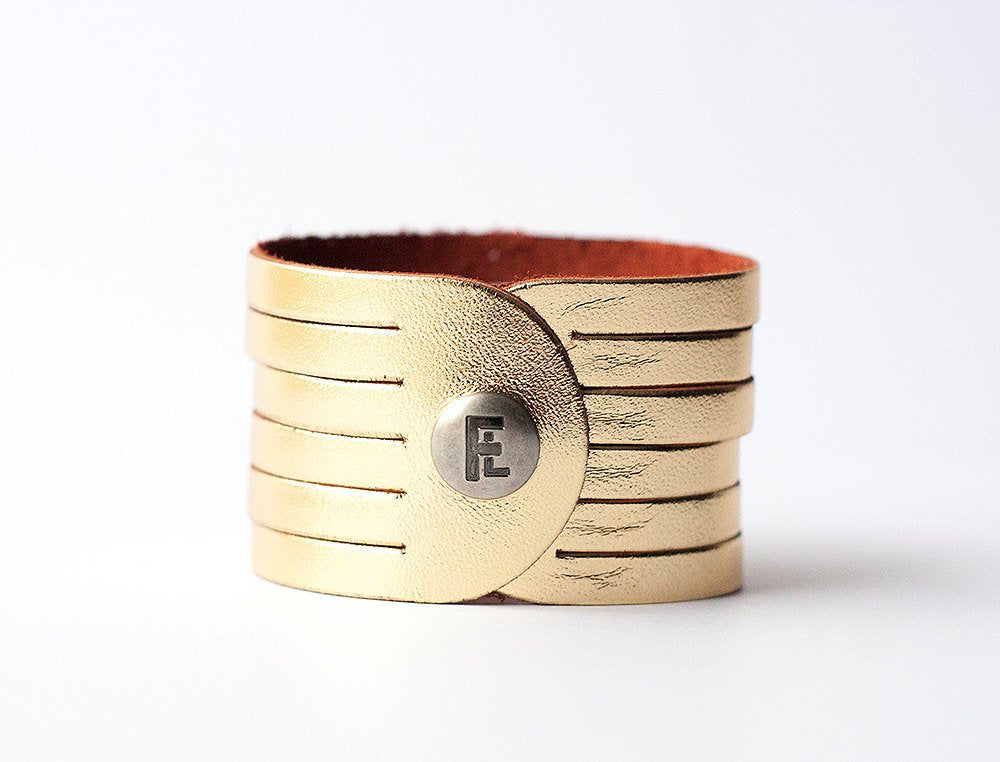 Leather Bracelet / Original Sliced Cuff / Metallic Gold