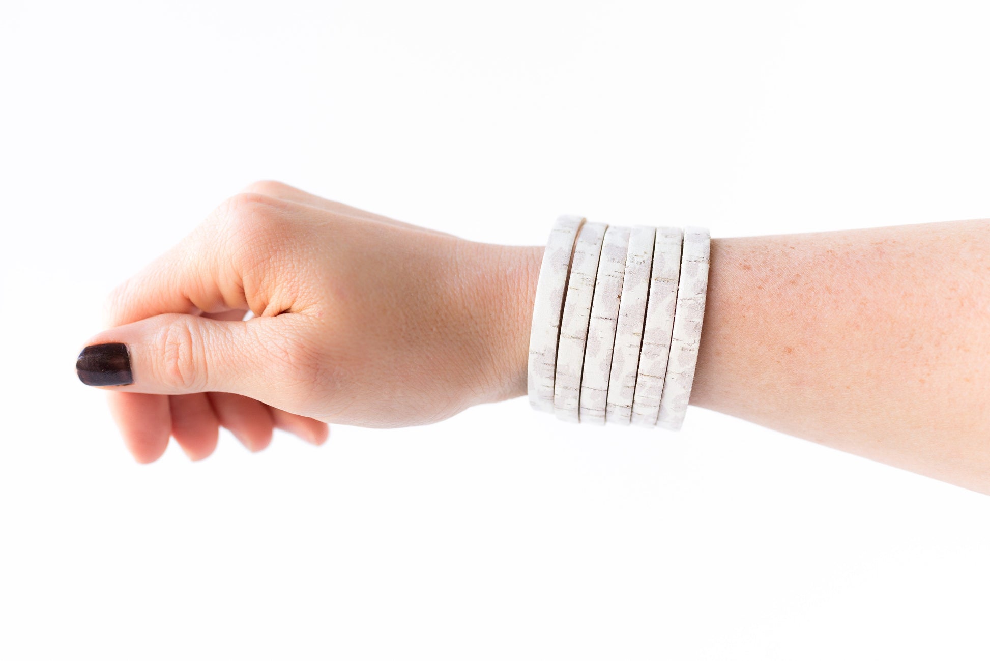 Leather Bracelet / Original Sliced Cuff / Nude Leopard Cork / Small