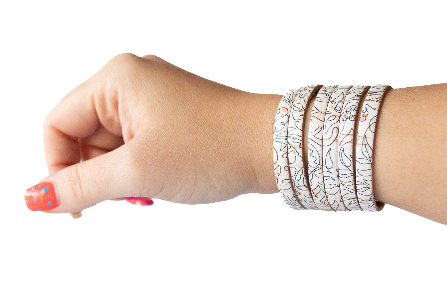 Leather Bracelet / Original Sliced Cuff / One Line Art Cork / Small