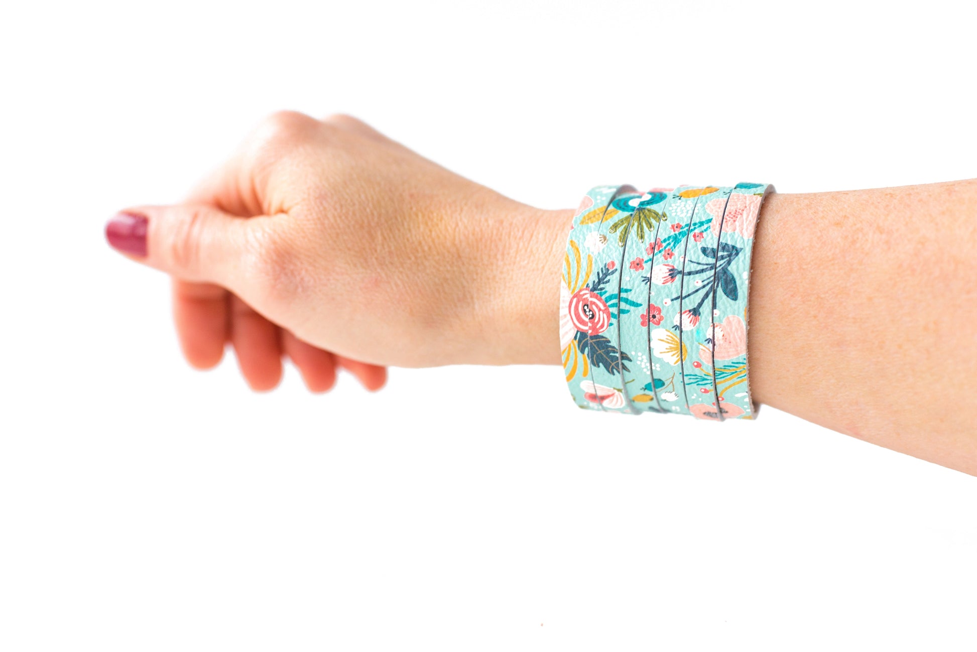 Leather Bracelet / Original Sliced Cuff / Spring Bouquet