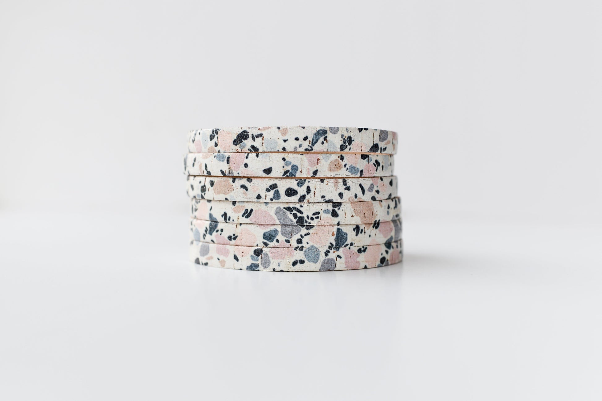 Leather Bracelet / Original Sliced Cuff / Sunset Pebbles Cork / Extra Large