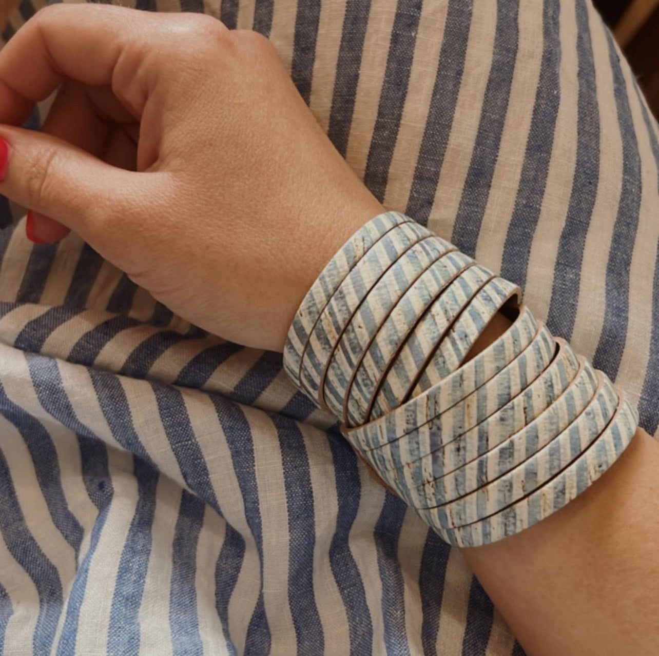 Leather Bracelet / Original Sliced Wrap Cuff / Autumn Blues Cork