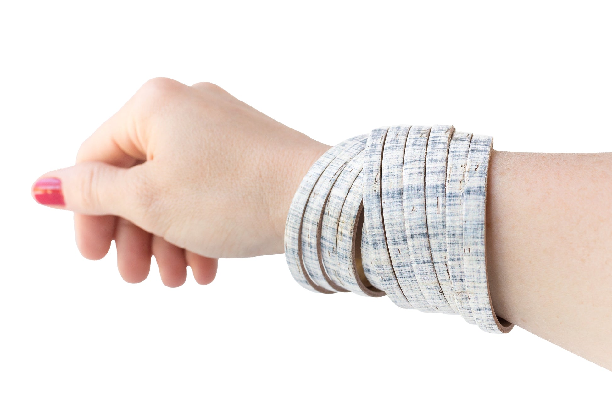 Leather Bracelet / Original Sliced Wrap Cuff / Denim Cork