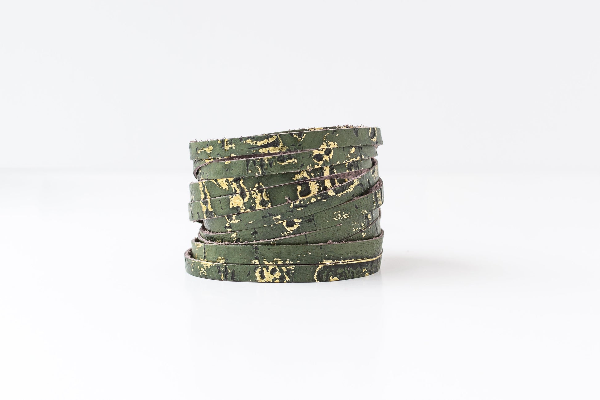 Leather Bracelet / Original Sliced Wrap Cuff / Driftwood Olive