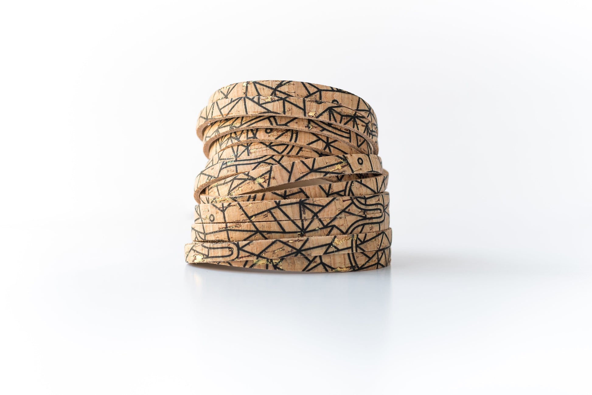 Leather Bracelet / Original Sliced Wrap Cuff / Geo Cork / Small