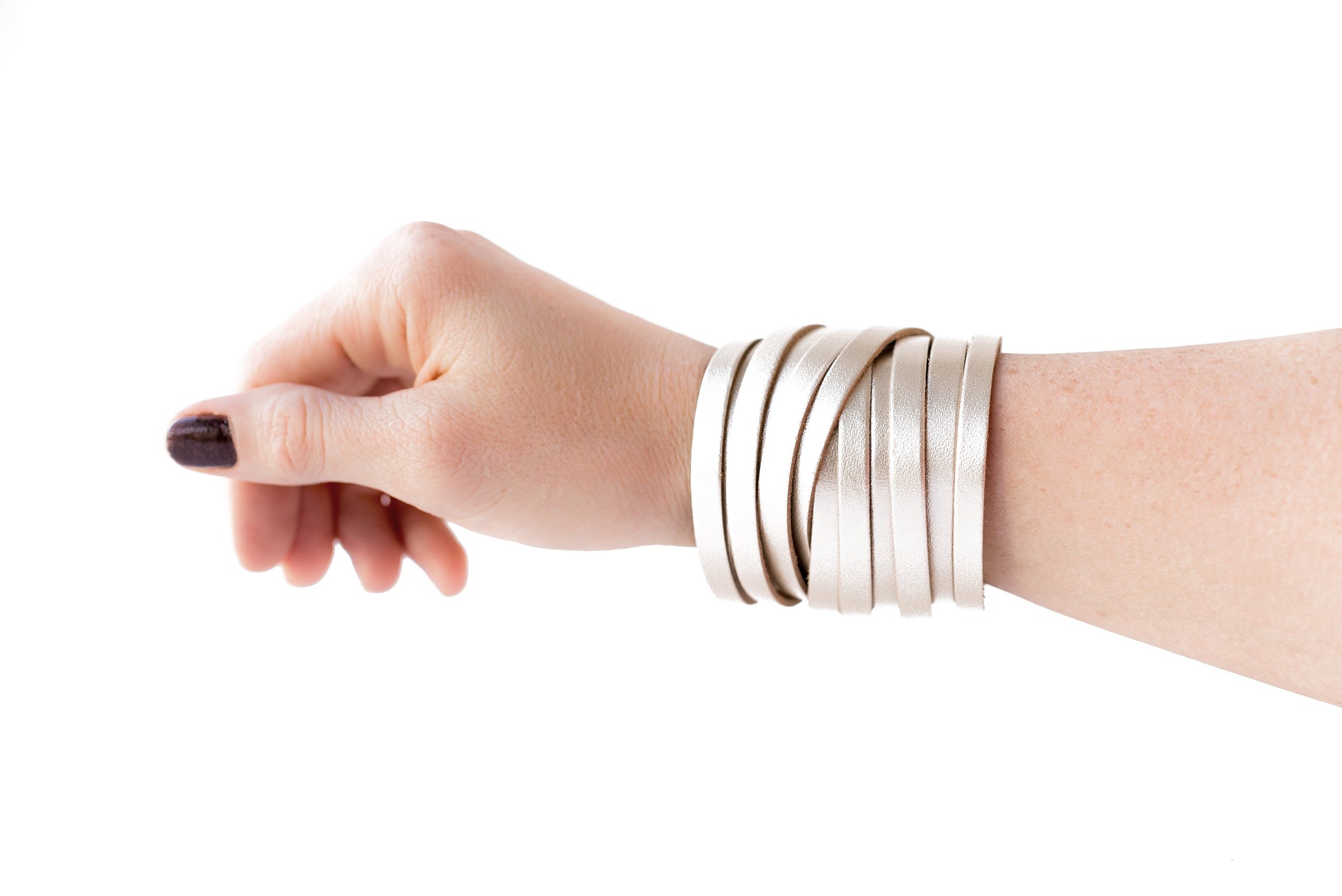 Leather Bracelet / Original Sliced Wrap Cuff / Metallic Platinum