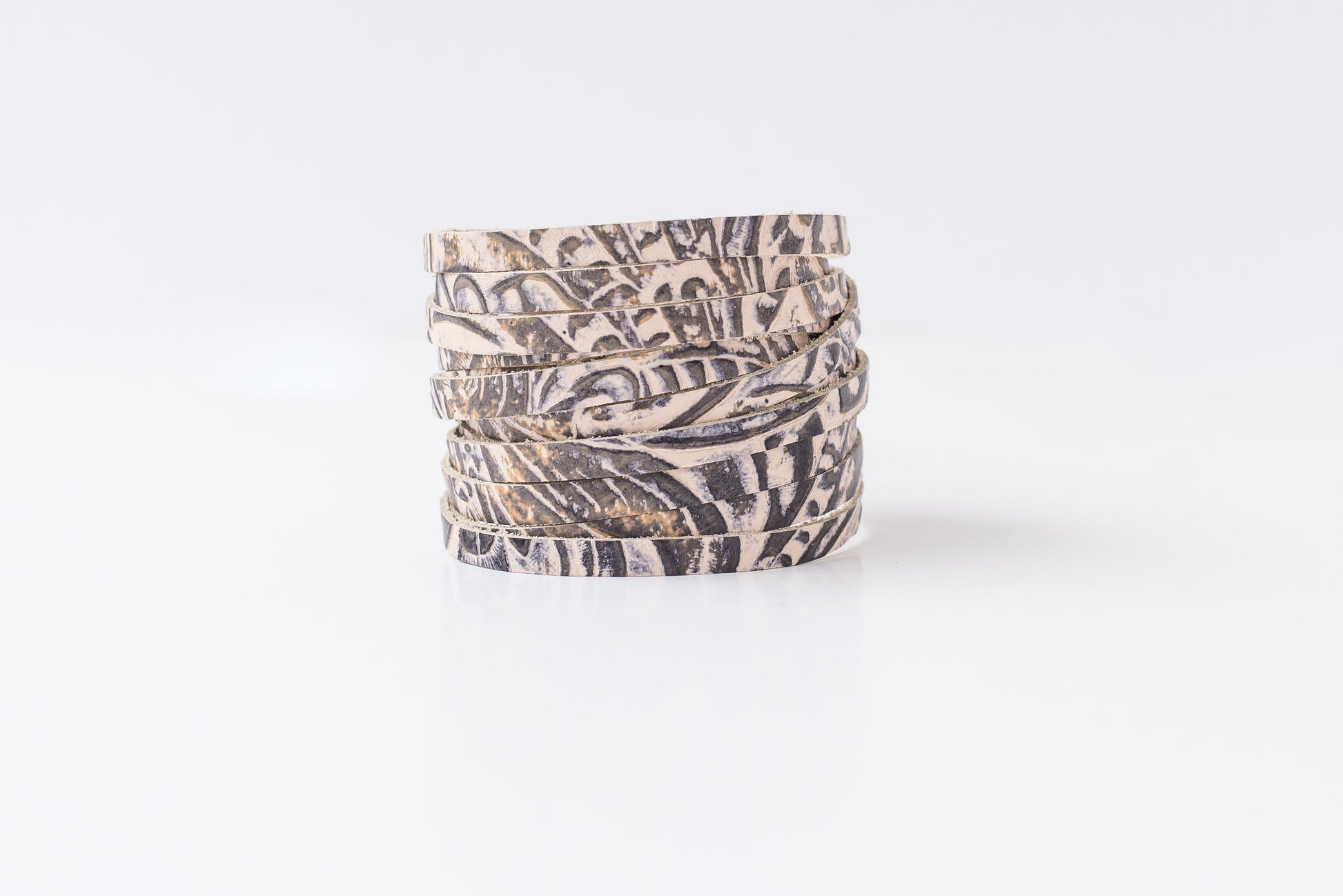 Leather Bracelet / Original Sliced Wrap Cuff / Morning Lily / Small