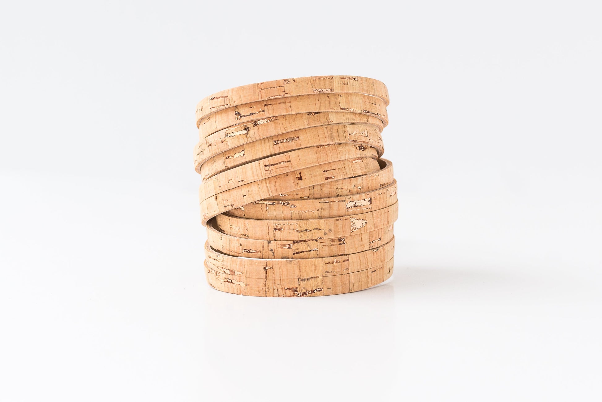 Leather Bracelet / Original Sliced Wrap Cuff / Rosegold Cork / Regular