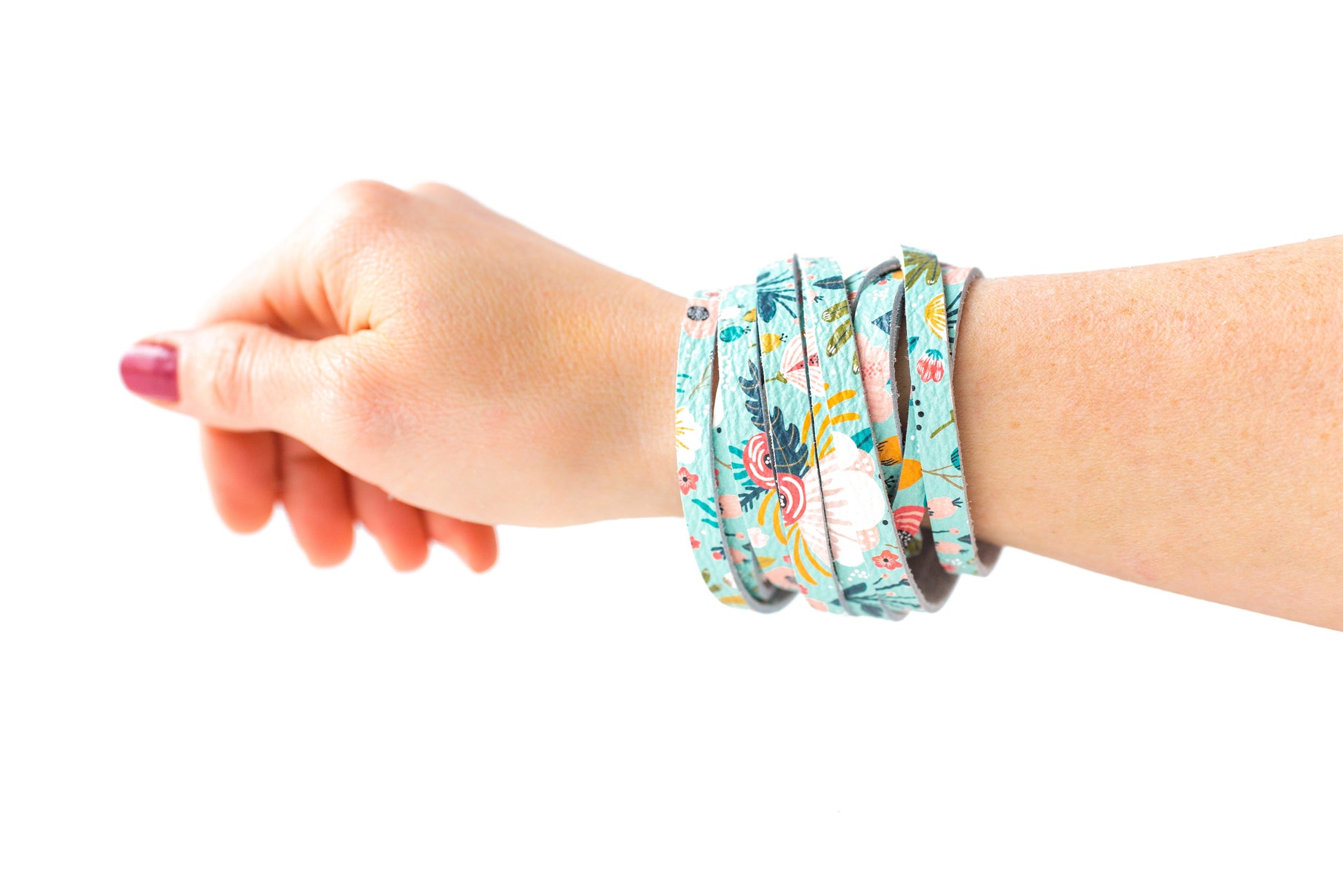 Leather Bracelet / Original Sliced Wrap Cuff / Spring Bouquet