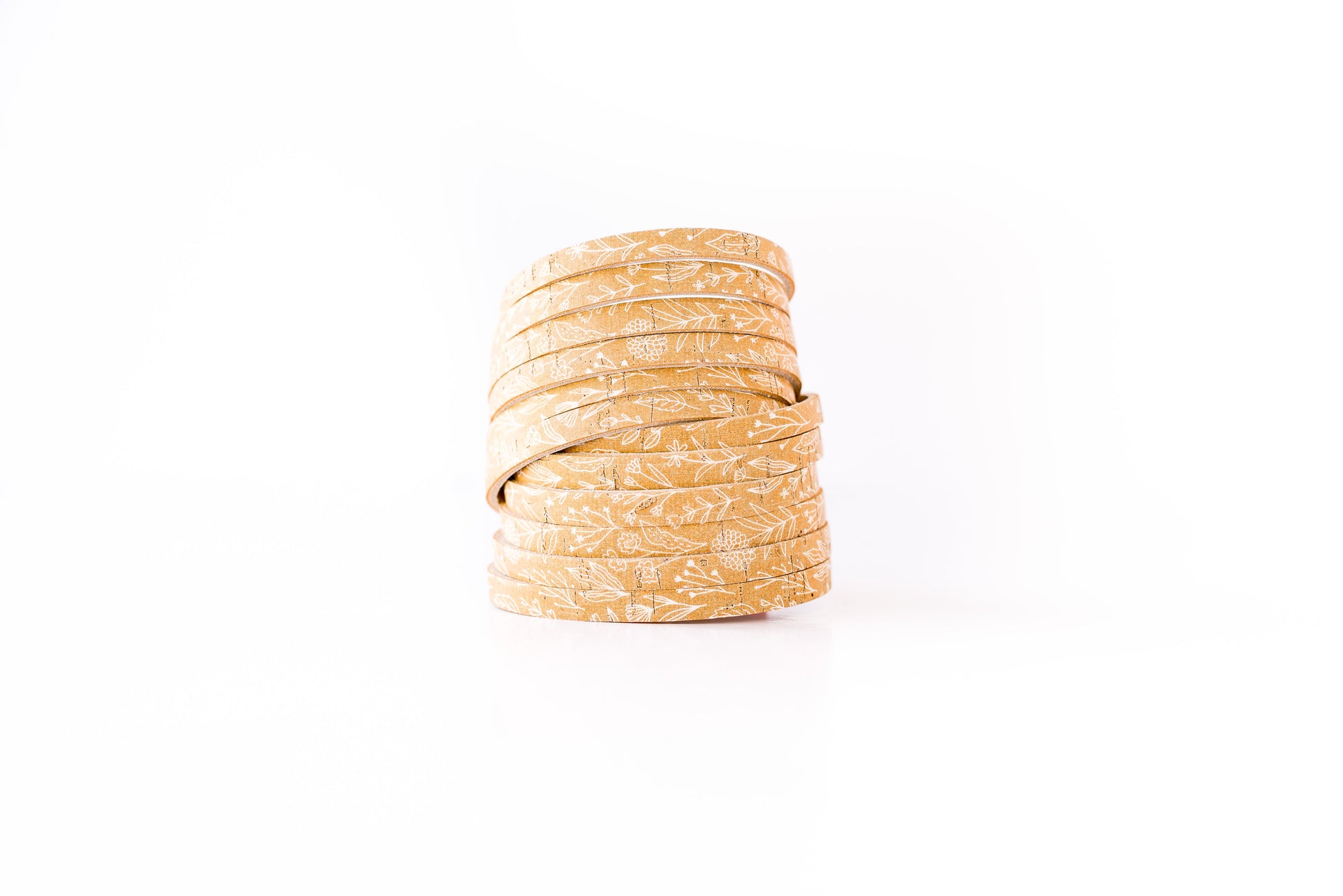 Leather Bracelet / Original Sliced Wrap Cuff / Straw Flowers Cork / Small