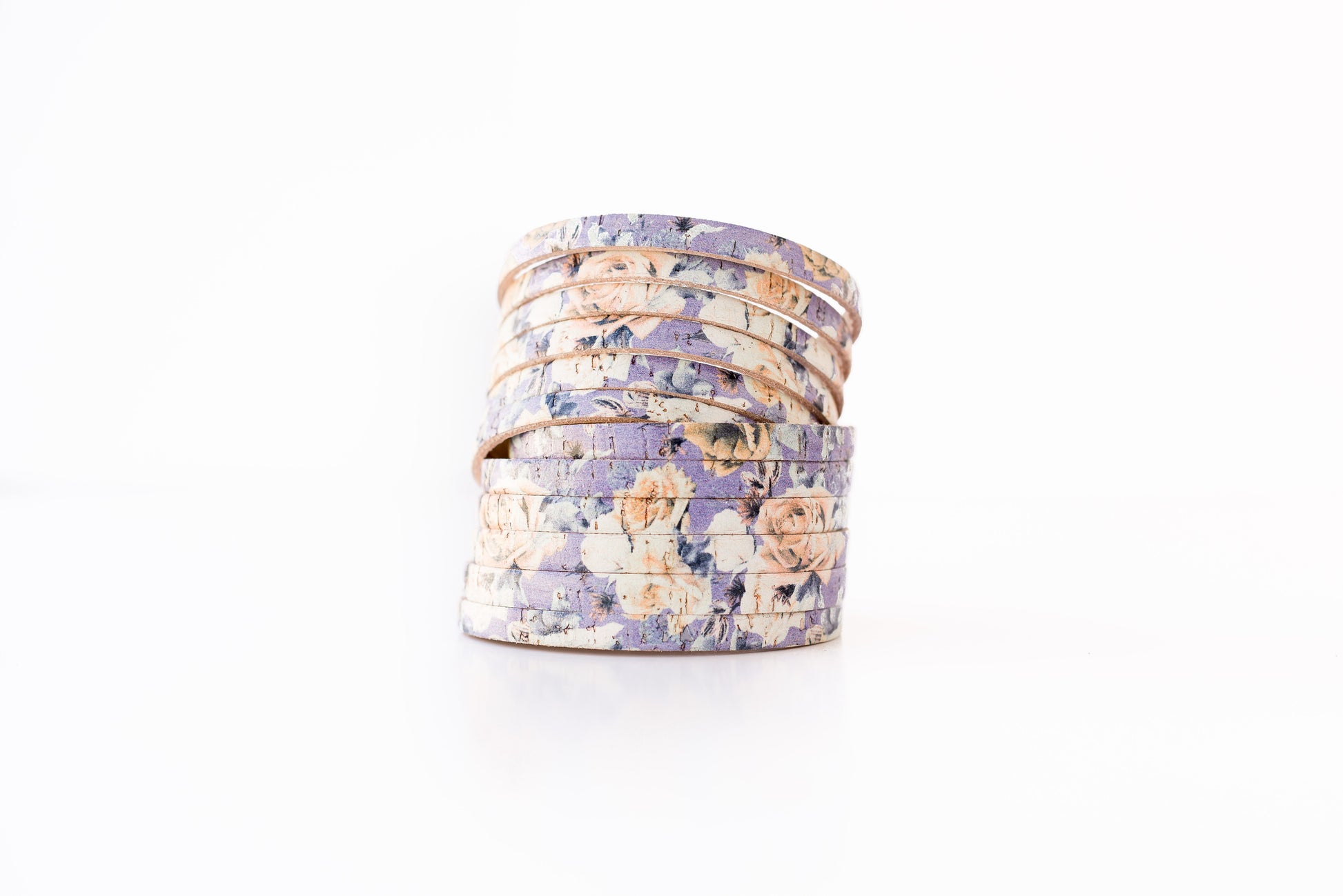 Leather Bracelet / Original Sliced Wrap Cuff / Yellow Roses Cork / Regular