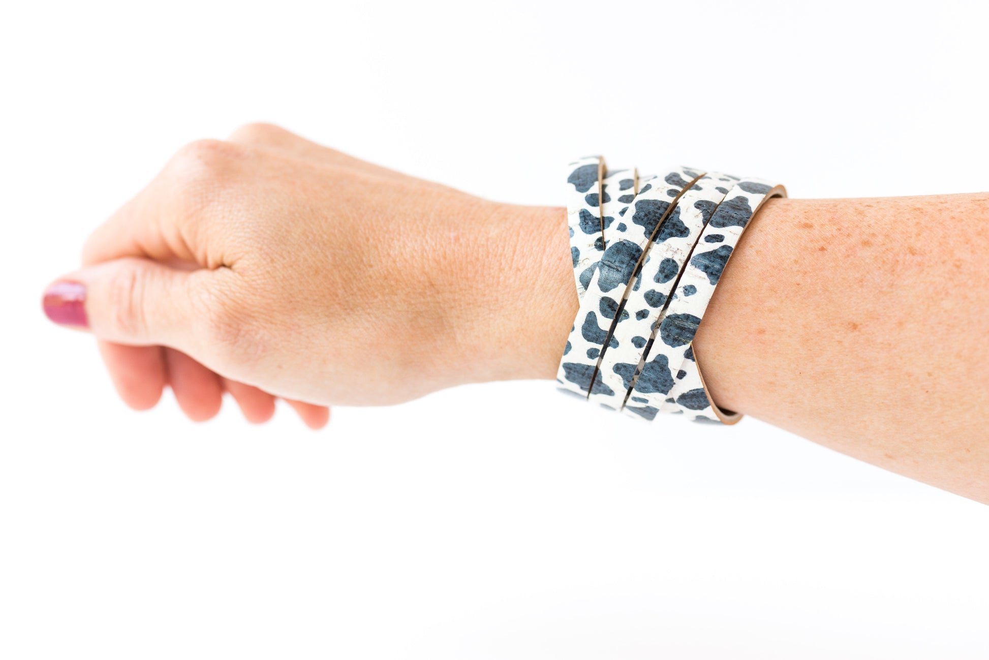 Leather Bracelet / Skinny Sliced Wrap Cuff / Cowbell Cork