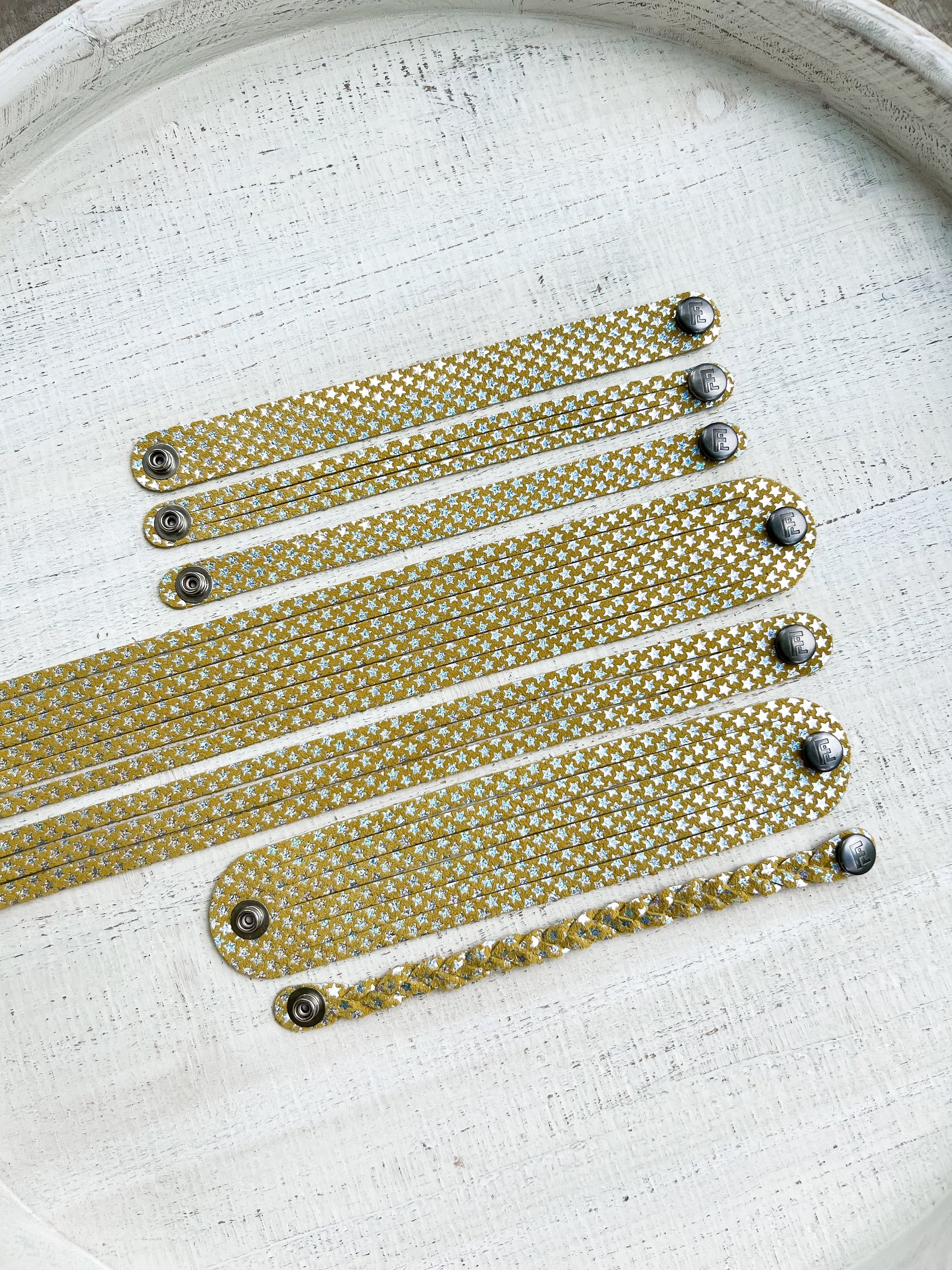 These bracelets will come with a brushed silver FL (Flourish Leather) logo snap.