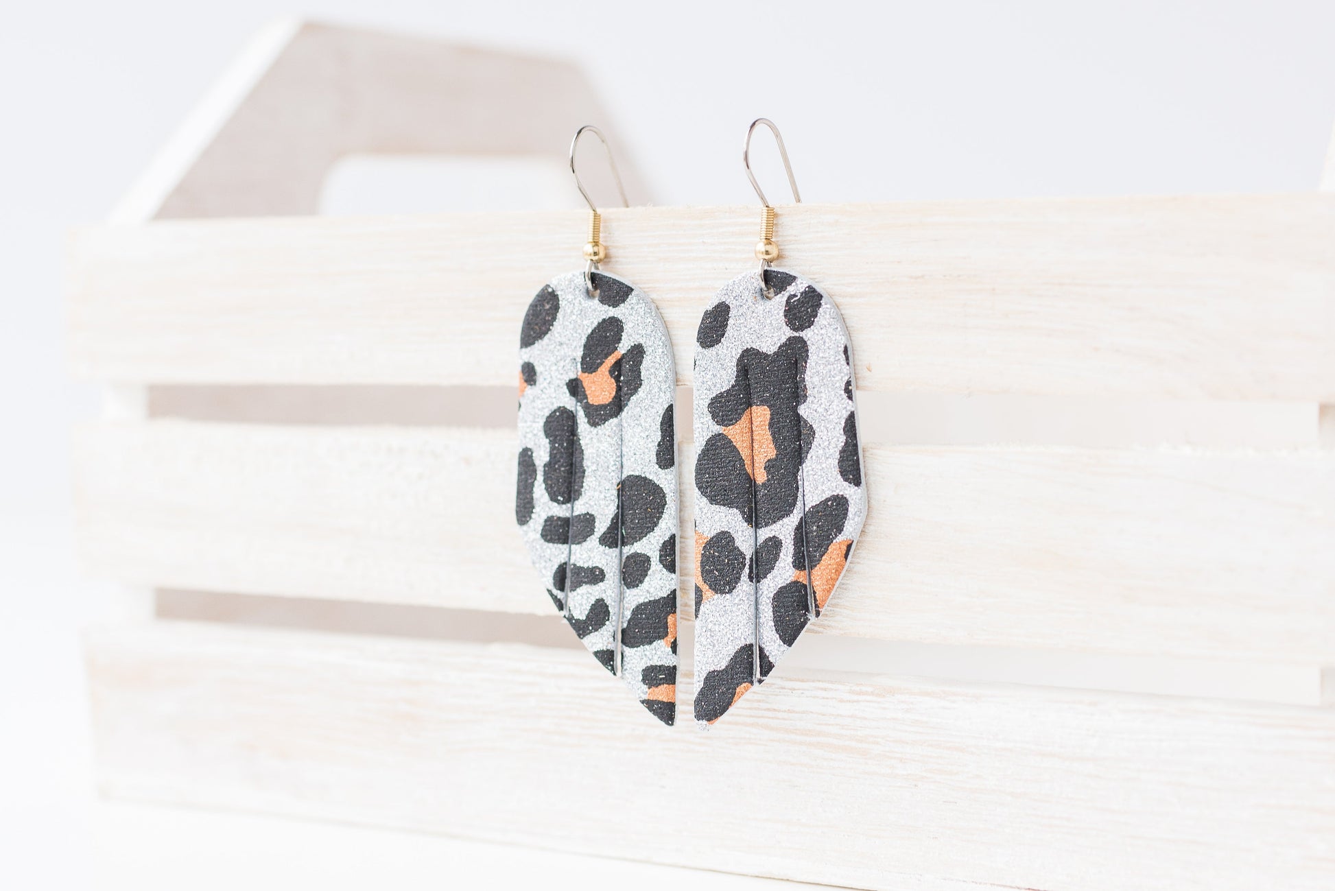 Leather Earrings / Mini Fringe / Sparkle Leopard Silver