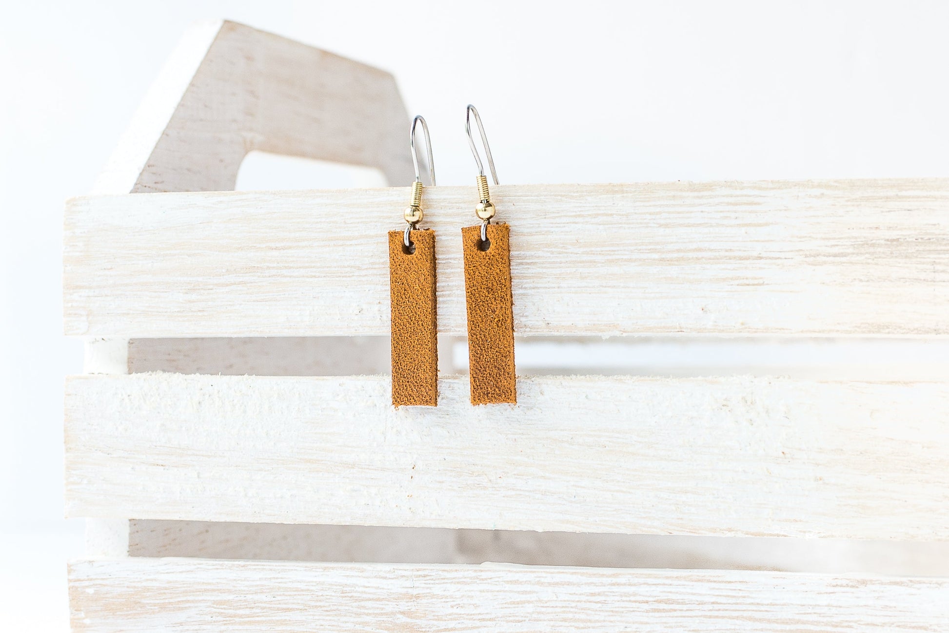 Leather Earrings / Simple Tiny / Nubuck Saddle